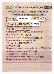 Госномер вы найдёте в Свидетельстве о регистрации (СТС) в строке «Регистрационный знак», а VIN в строке «Идентификационный номер».